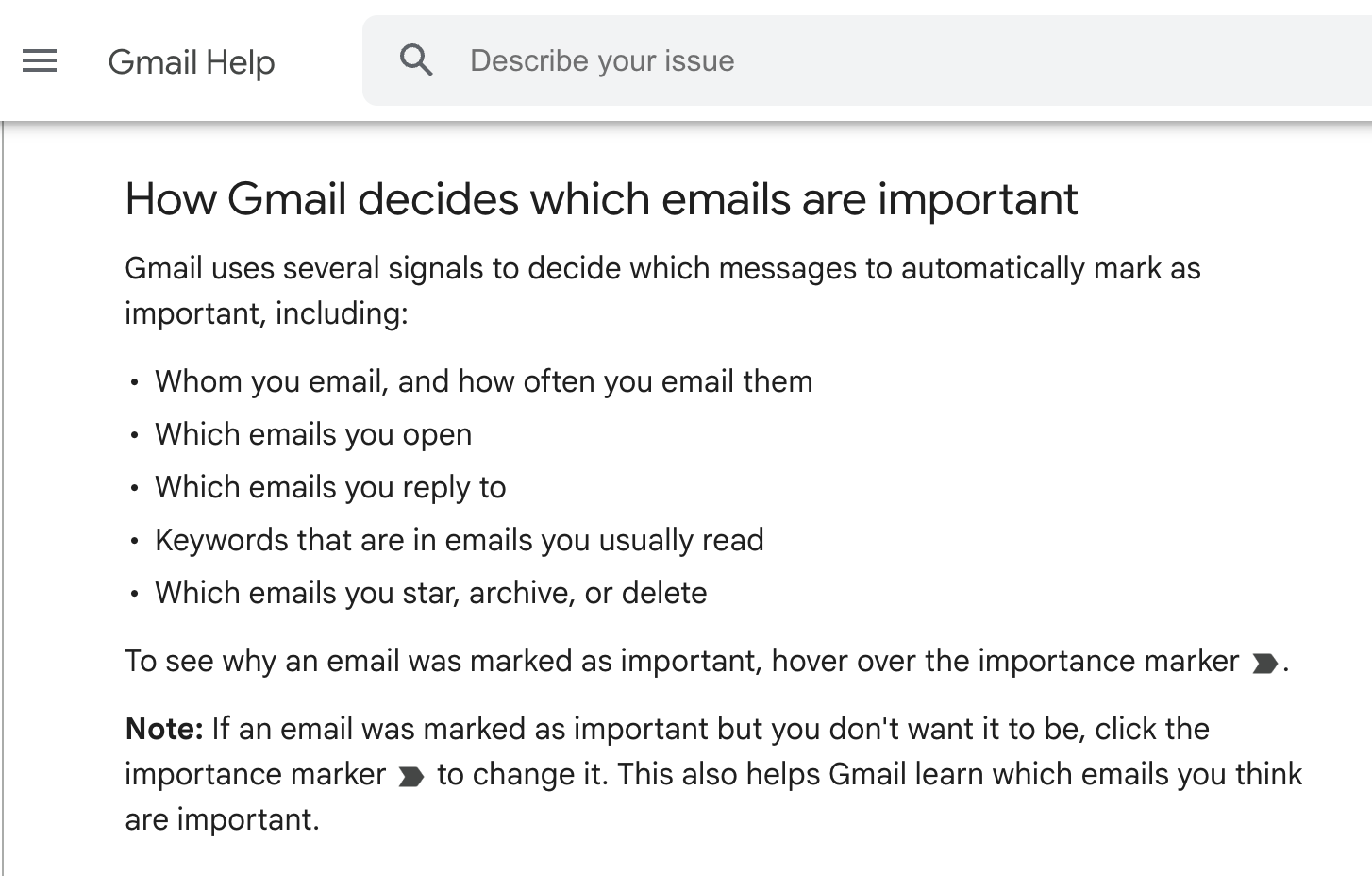 Google automatically marked the email as “Important” without my intervention based on its interpretation of the contents.