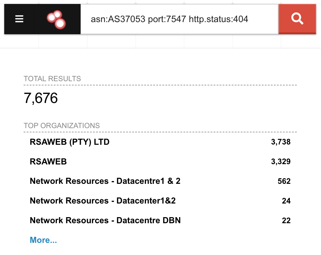 I ran a Shodan query for all RSAWEB customer IP addresses with port 7547 exposed: