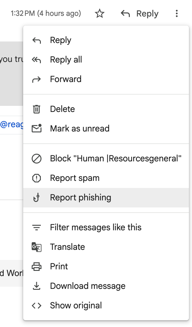 Folks who aren’t cybersecurity analysts can use the three-dot menu once a Gmail message is open to “Report phishing”. This will move the email to your Spam folder, limit your ability to load images, and alert Google Threat Intelligence to help protect other Internet users.