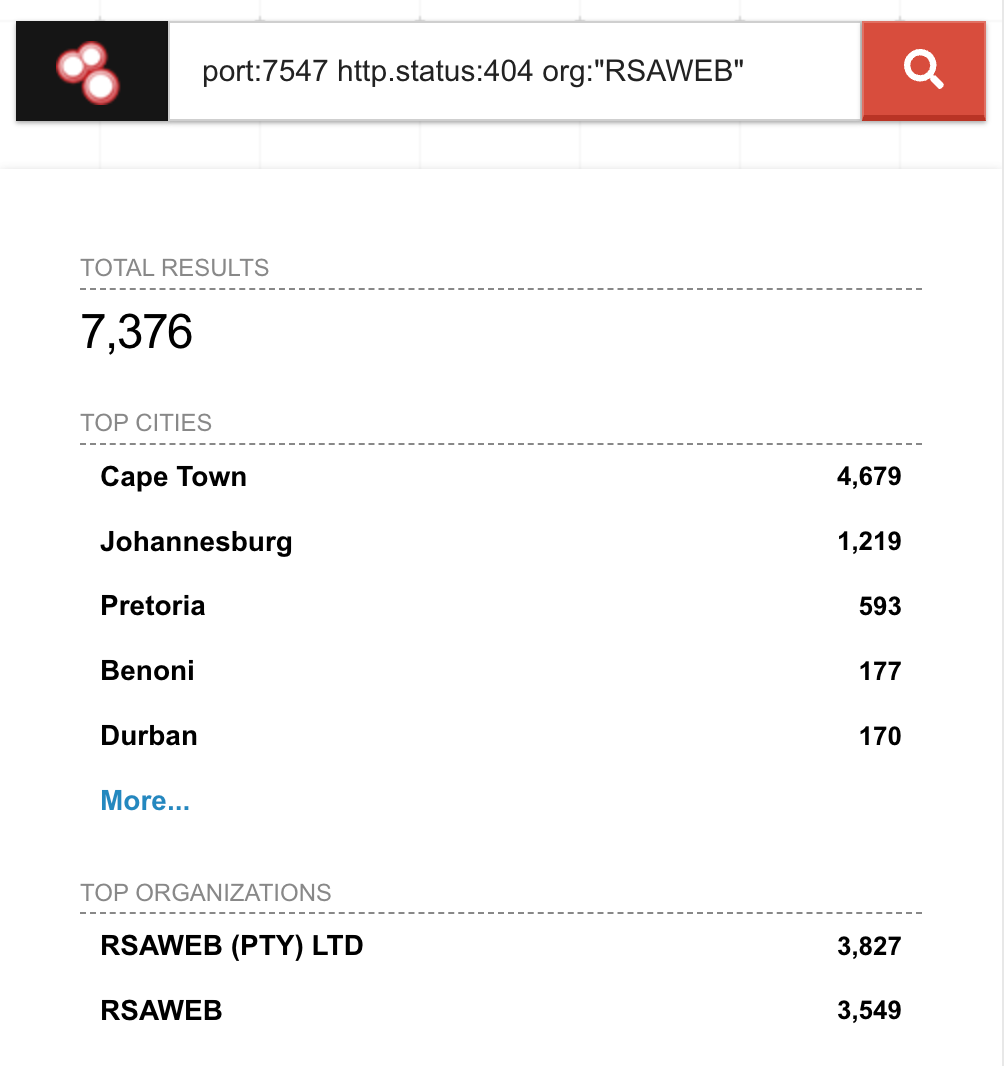 Results: 7,676 vulnerable RSAWEB devices in South Africa are completely unauthenticated and accessible to anyone who connects.