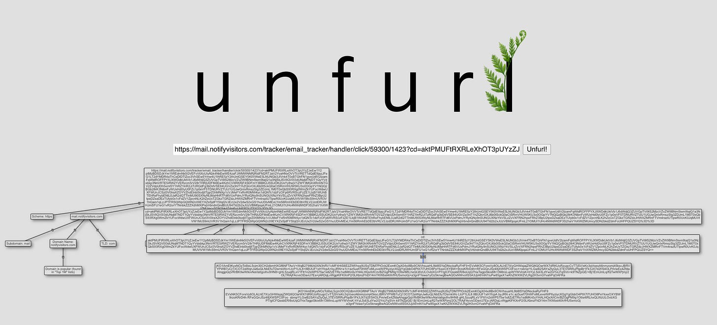 https://mail.notifyvisitors.com/tracker/email_tracker/handler/click/59300/1423?cd=aktPMUFtRXRLeXhOT3pUYzZJeEw1Y2ptMzBDSDJkYm1IWEdmNk5GVEFvVitXcUIyNzk4NkEwWE4zaFJWMWNNRjRIdFM2RTJaV2YvaHNxOVVTcVRETTdQdE9jazJFeG1LT2dYMDR4aThCeDlDTlZoc3VhSEw5Ymw4U1lhRE[...]This link *appears* to be a legitimate email tracking link, but in reality, the attacker has embedded a hidden phishing destination inside.